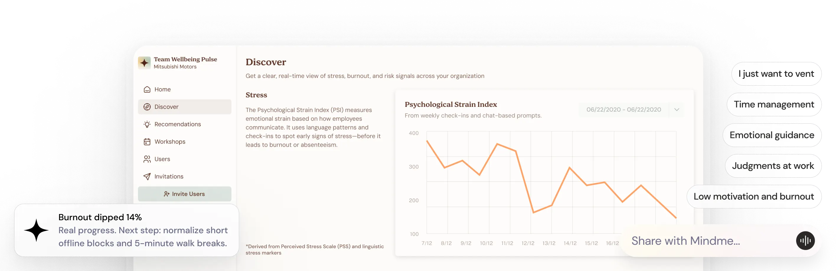 Give your team real-time support that drives performance and prevents burnout. Book a demo and see how Mindme transforms care into strategy.