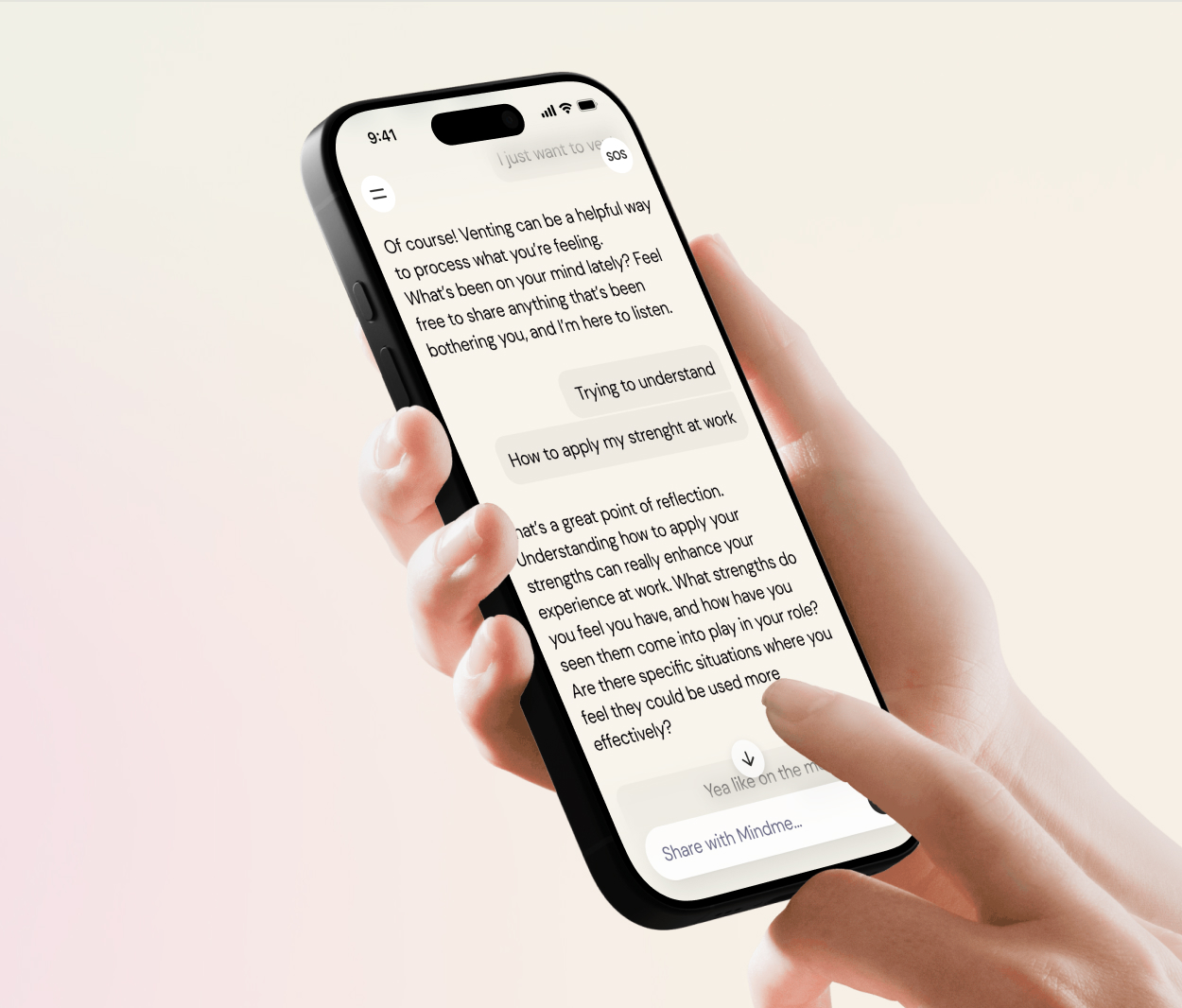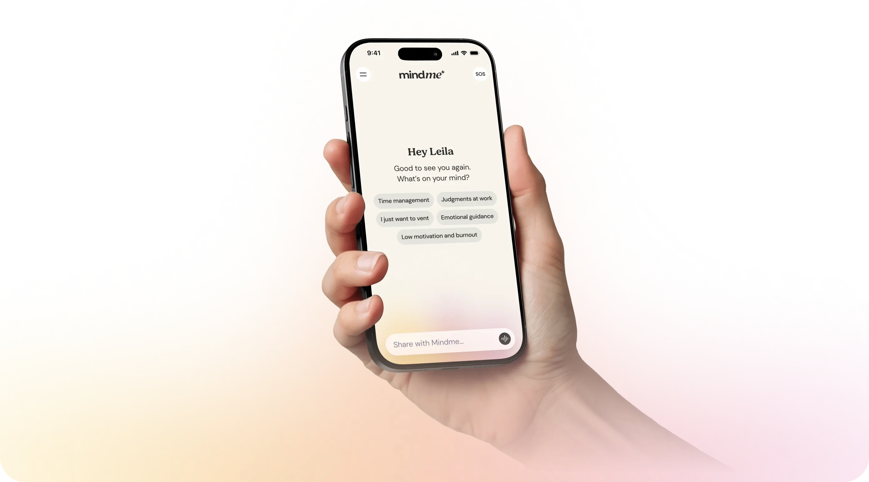 Mindme isn't just an app—it's your always-on companion, blending AI with insights from clinical and organizational psychology.
