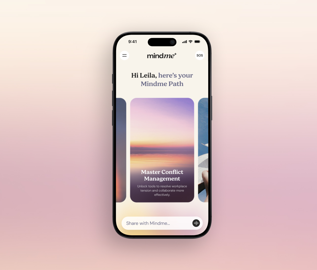 Mindme is your everyday companion for the mental side of work — supporting stress, burnout, focus, and personal growth with AI-powered guidance shaped by human expertise.